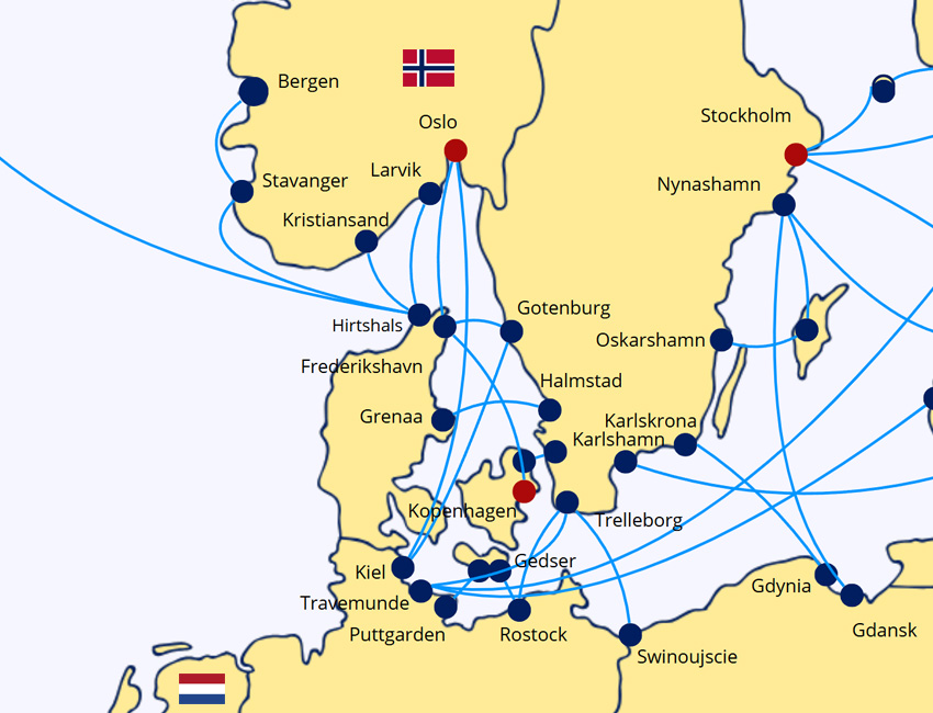 Stel je gewenste overtocht vrijblijvend samen en bekijk meteen de vertrektijden en de voordeligste opties. Kies Duitsland of  Denemarken als vertrekplaats voor veerdiensten naar Oslo.